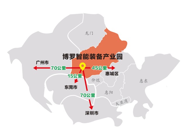相對于惠州市區(qū)乃至博羅縣城,園區(qū)位置更靠近東莞——距博羅縣城33公里、距園洲鎮(zhèn)區(qū)3公里、距石灣鎮(zhèn)區(qū)2公里,與東莞隔江相望,距東莞主城區(qū)約15公里,到廣州市區(qū)、深圳市區(qū)約70公里。