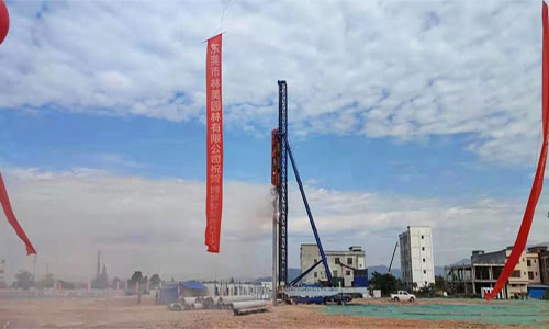 D項(xiàng)目動(dòng)工現(xiàn)場(chǎng),機(jī)器正在打樁