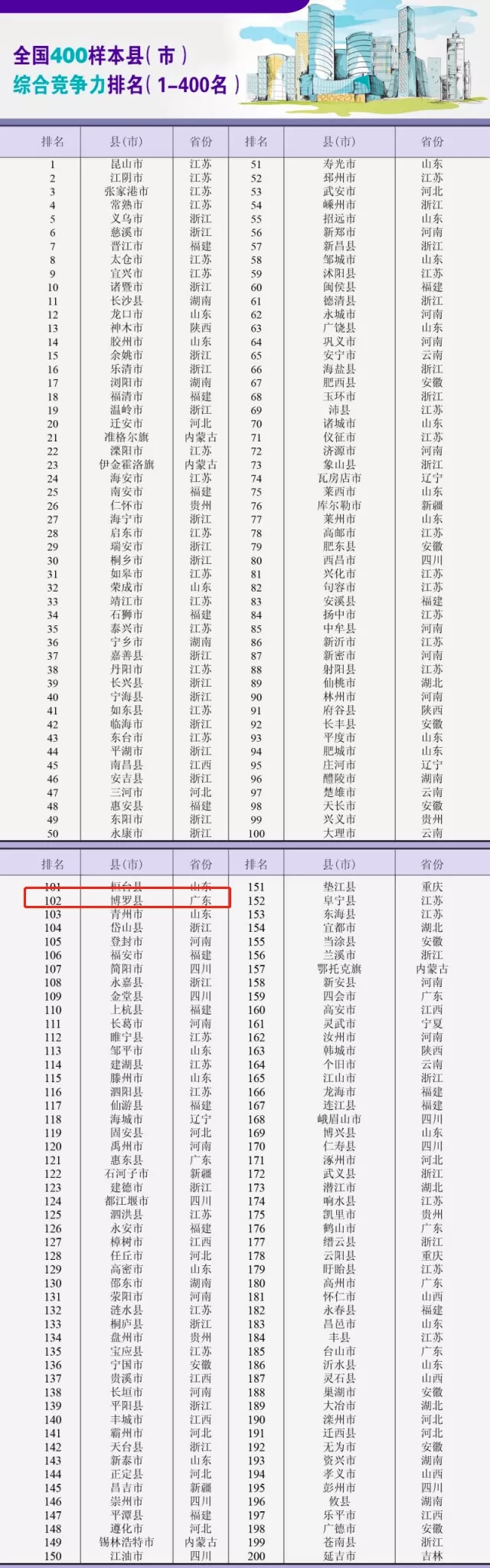同時(shí)還有“2021年全國(guó)綜合競(jìng)爭(zhēng)力百?gòu)?qiáng)縣(市)報(bào)告”在京發(fā)布。在該榜單中,博羅縣排進(jìn)全國(guó)縣域綜合競(jìng)爭(zhēng)力前兩百名,位列第102名。