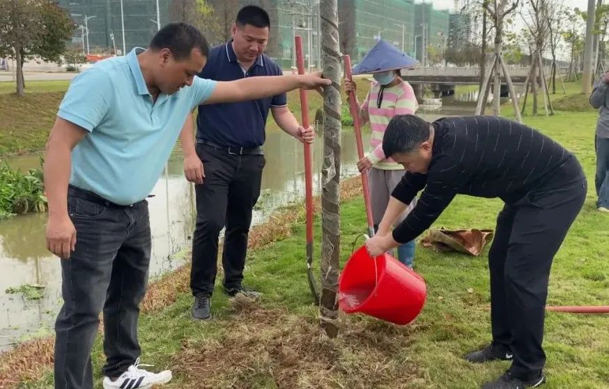 李平同志一邊植樹,一邊詢問了解苗木品種、生長習(xí)性等情況,叮囑有關(guān)部門要加強(qiáng)后續(xù)管護(hù),確保種植一片、成活一片、美化一片。他強(qiáng)調(diào),園區(qū)上下要深入貫徹習(xí)近平生態(tài)文明思想,堅(jiān)定不移走生態(tài)優(yōu)先、綠色發(fā)展之路,動員廣大干部群眾一起綠化美化家園,推動植綠護(hù)綠常態(tài)化,營造人人共建綠色家園、共享綠色生活的良好氛圍。