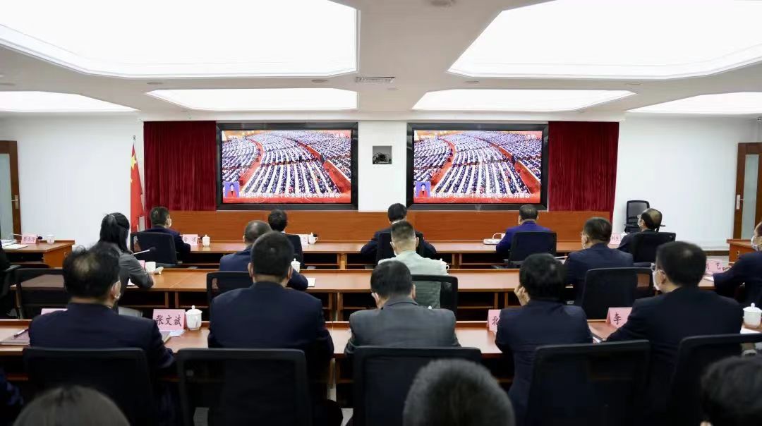 ▲縣政府辦組織全體黨員干部集中收看開幕大會(huì)。