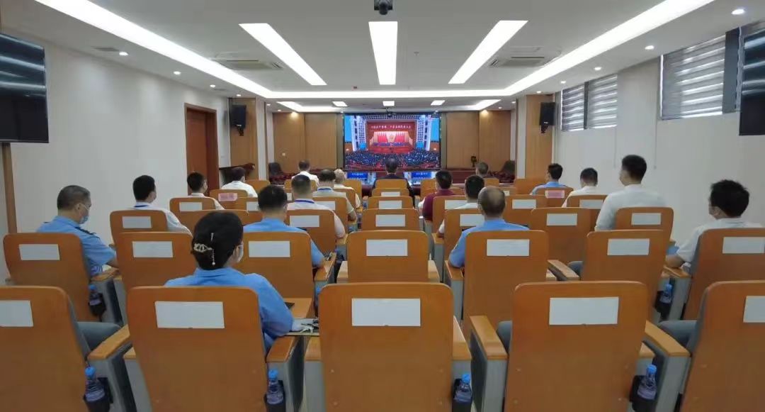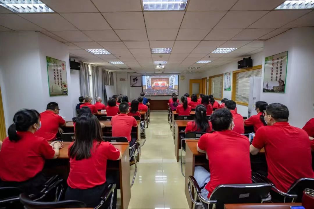 ▲縣融媒體中心全體黨員干部職工集中收看開幕式直播。