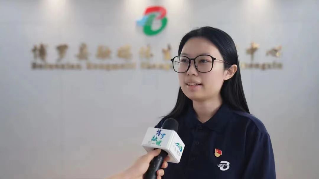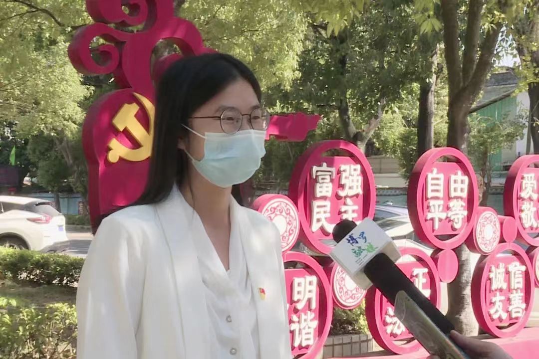 ▲縣融媒體中心員工陳儀莎接受記者采訪。