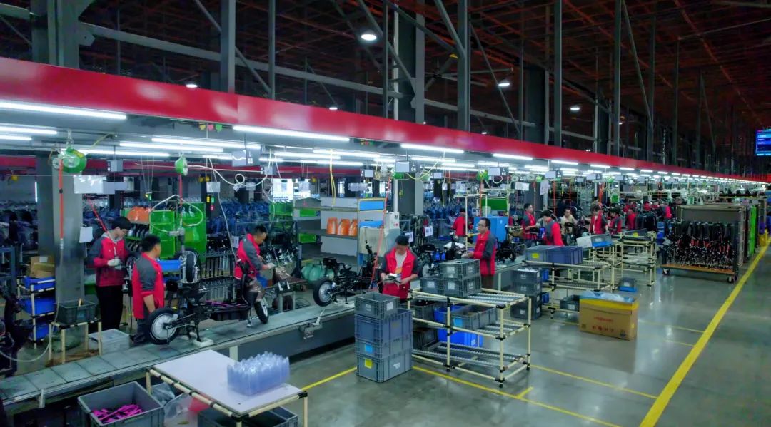 △在位于龍華鎮(zhèn)的臺鈴科技(廣東)有限公司生產(chǎn)車間內(nèi),一條完整的電動車生產(chǎn)線正在加速運轉(zhuǎn)。